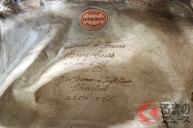 また、エンツォから、「剥がしたシートにはドライバー名、レース開催日、サーキット名を書き、サインをするように。このシートはただのピッグスキンではない、立派な芸術作品なのだから」と嬉しい助言までもらったという。