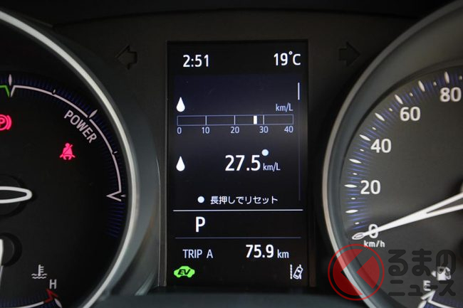 今回、燃費テストに使用したのは、1.8リッターハイブリッドの「G」グレード(2WD)。カタログ燃費はWLTCモード燃費が25.8km/L(市街地モード24.7km/L、郊外モード28.6km/L、高速道路モード24.6km/L)、JC08モード燃費が30.4km/Lとなっています。