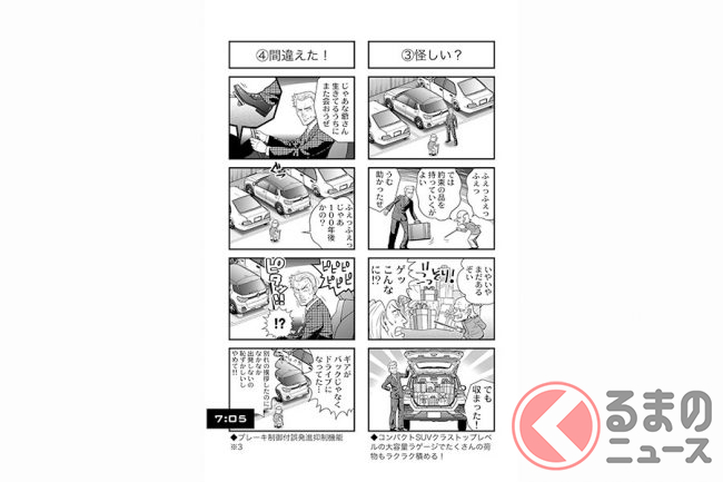 トヨタ「ライズ」は、イイところが多すぎて、販売店で説明する際も困るほどの魅力を持っているといいます。それを一つ一つ説明するのは大変なので、4コマ形式の漫画で魅力を伝えます。