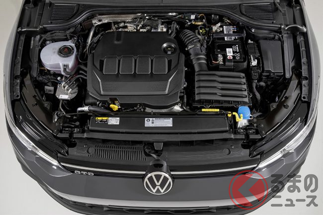 新型ゴルフGTIは、245ps・370Nmを発生する2リッター直列4気筒直噴ターボエンジン(EA888evo4)を搭載。欧州では6速MTが標準で、7速DSGはオプションで選択できる。