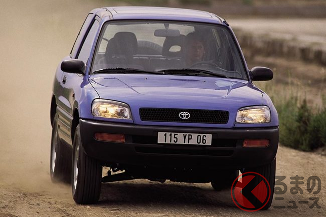 初代RAV4は、1994年5月に乗用車をベースとしたクロスオーバーSUVとして登場。当時のSUVといえばオフローダーというイメージでしたが、RAV4はカジュアルに乗れるSUVとして人気を博します。「キムタク」こと木村拓哉氏がCMに出演したことも話題になりました。