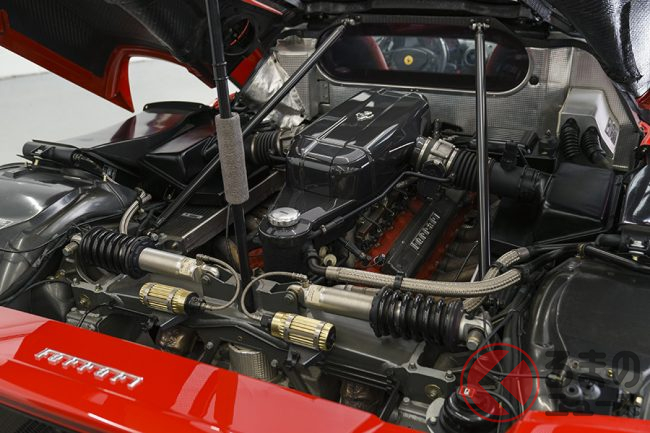 前作のF50が4.7リッターの排気量から、やはり自然吸気で520psを発揮していたことを考えると、フェラーリのパワー志向は相当に強かったことが伺える。