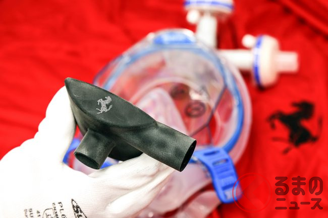 人工呼吸器バルブと継ぎ手には、わざわざフェラーリの象徴であるキャバリーノ・ランパンテ(跳ね馬)がレーザーで刻印されているが、これにはフェラーリからの強いメッセージが込められている。
