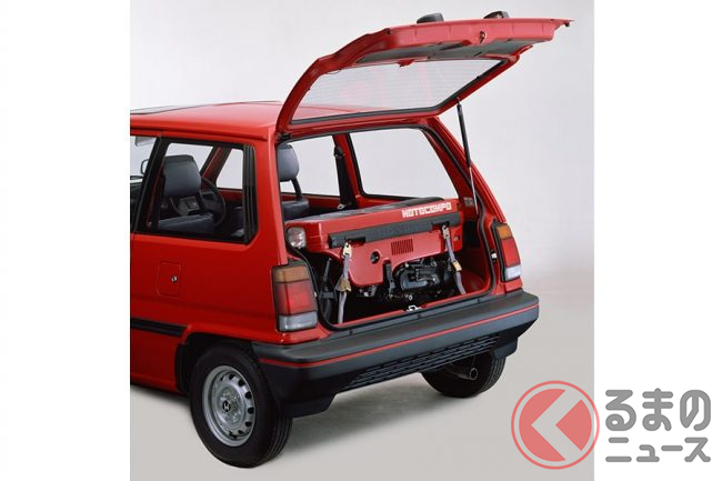 さらに広い室内による積載性の良さを強調するために、「モトコンポ」という原付バイクを車体後部に載せるというアイデアを実現。