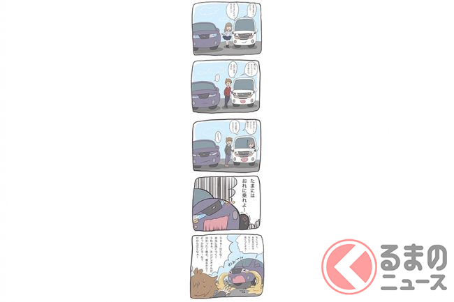 「ステップにリップをつけなきゃ。」という旦那様の言葉に「クルマにリップクリームを塗るのかな? 」と不思議に思ってしまうほど、クルマの知識がほとんどない奥様が、クルマ好きの旦那様と愛車のゆる~い日常を描いたマンガ、「ハイブリッドなステップ君」がツイッターで人気です。