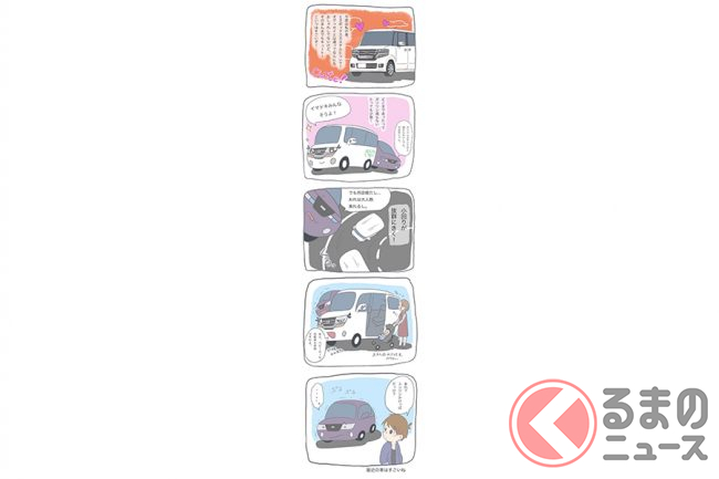ツイッターで公開されたマンガ「ハイブリッドなステップ君」は、クルマが大好きな旦那様と愛車の関係を、奥様目線で描いた癒し系マンガです。