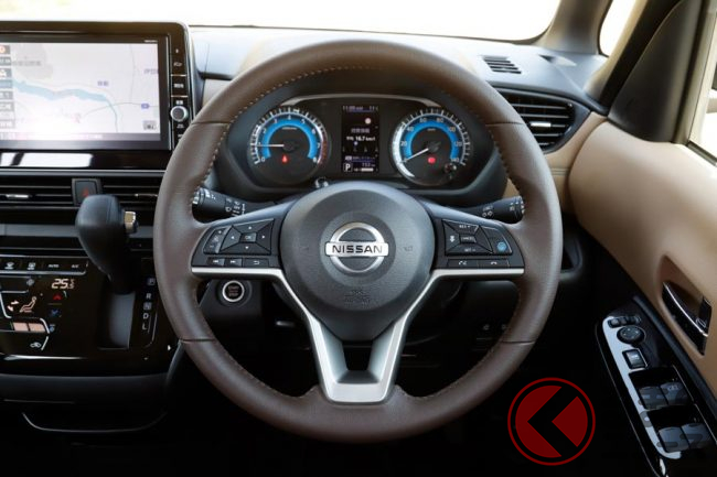 「X」系グレードは助手席側、「プロパイロットエディション」では左右両側に電動スライドドアを備え、そこには「ハンズフリーオートスライドドア」と呼ぶ、手を使うことなく足の動きをきっかけにドアを開閉する機能も搭載。この機能を左右ドアとも設定し、開けるだけでなく閉じられるのは新型ルークスと兄弟車の三菱「eKスペース/eKクロススペース」だけなのです。