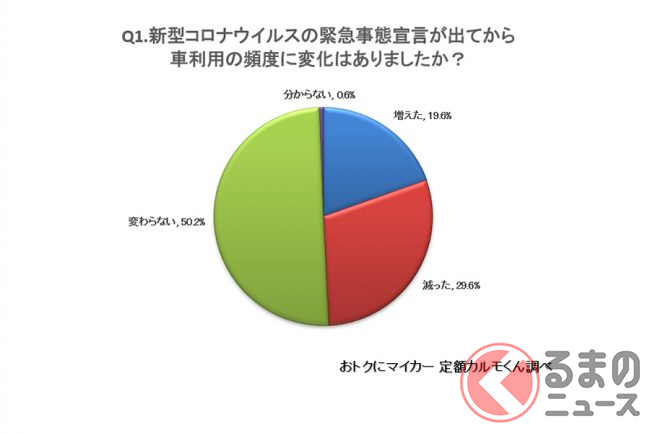 個人向けカーリース「おトクにマイカー定額カルモくん」を運営するナイルは、緊急事態宣言による通勤などのクルマの利用状況への影響を調査しました。