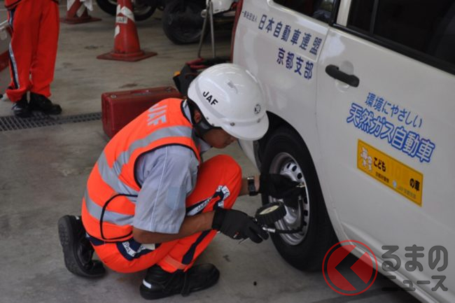 近年、JAFではタイヤのトラブルに関する要請が増加しています。