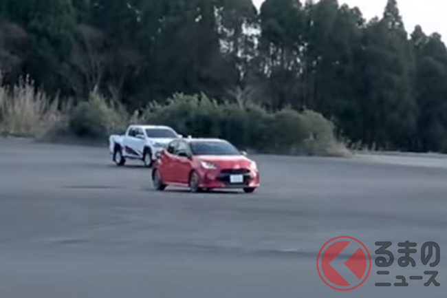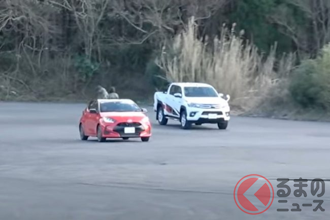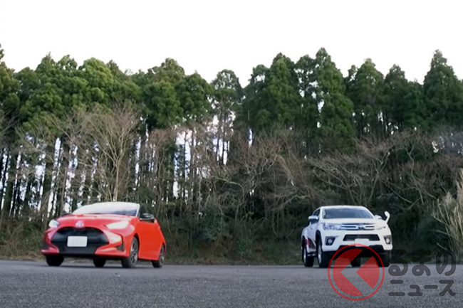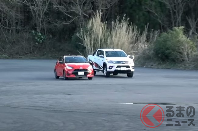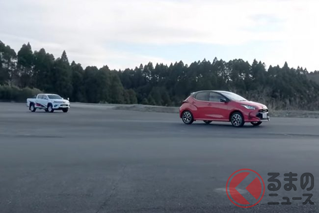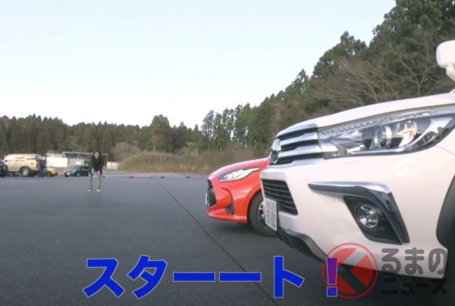 今回、トヨタのコンパクトカー「ヤリス」とピックアップトラック「ハイラックス」で、どちらの加速が鋭いかを競うため、「スタートダッシュ対決」を実施。どのような結果となったのでしょうか。