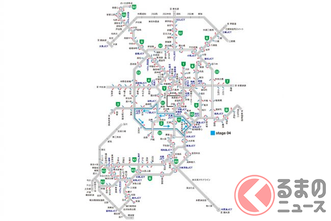 次に谷町JCTで3号線に入り、大橋JCTからC2内回りに入ると大井JCTで湾岸線東行きに入ることができ、有明JCTから11号台場線に戻ることができる。