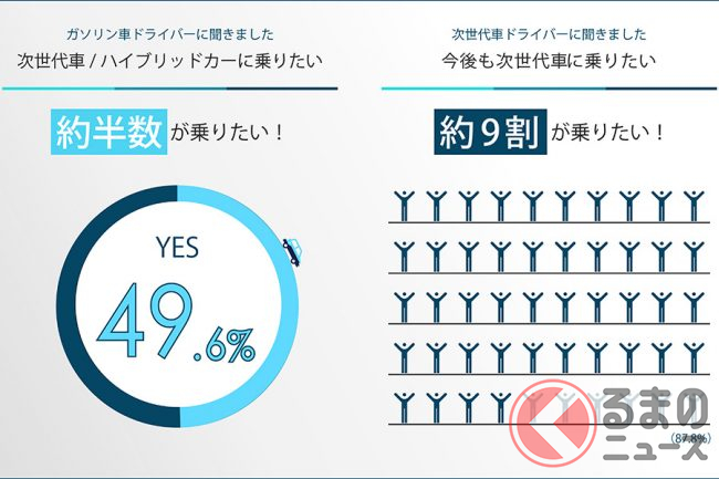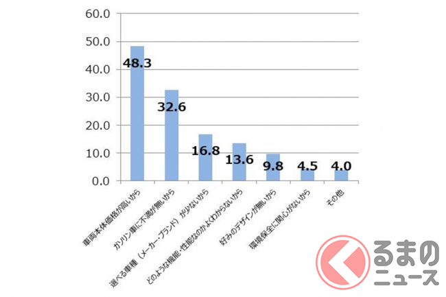 一方で、ガソリン車ドライバーに対し「次世代車に乗らない理由はなんですか」と質問したところ、「車両本体価格が高いから」ともっとも多い48.3%が回答し、次いで32.6%が「ガソリン車に不満が無いから」と回答した。