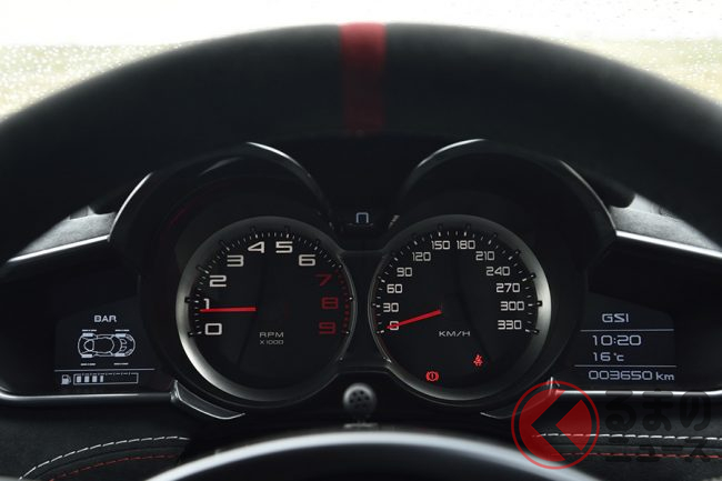 アクセルレスポンスもピーキーさはないので、普段の街乗りレベルから取り回しが非常に楽だ。スーパーカーらしさを全面に押し出しながらも、扱いやすさが感じられる優しいセッティングとなっている。買い物すら気負わず乗り出せそうなほどだ。