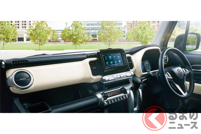 クロスビーの内装は、冒険心を刺激するデザインとされています。水平基調のインパネで視界が良くいことに加え、ブラック内装のなかでアイボリーのインパネやドアトリムが目を引きます。