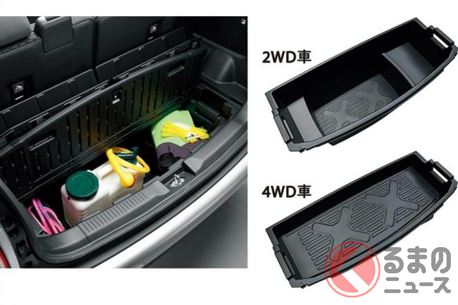 後席の背面やラゲッジフロアは汚れをふき取りやすい素材を採用するとともに、荷室下にはラゲッジアンダーボックスを採用。とくに2WD車は大容量で、ラゲッジボードを外すと荷室高が拡大し、背の高い荷物も収納することができます。