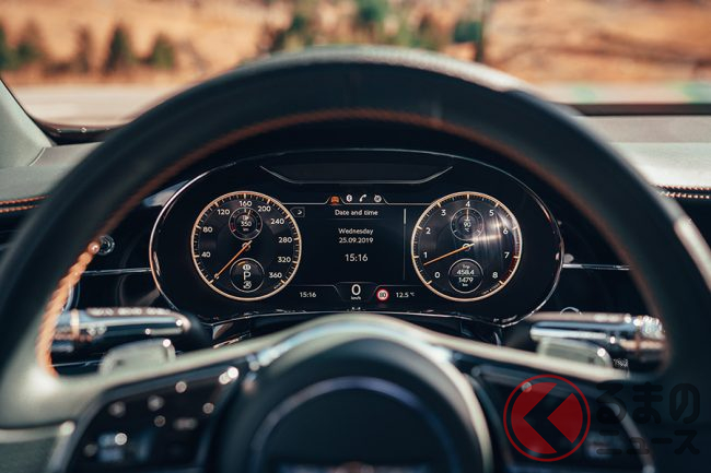 ベントレーの「コンチネンタルGT」や「フライングスパー」のメーターパネルは非常に見やすく、かつ個性的なデザインだ。デジタルで表現されたアナログなメーターパネルのデザインは、旧来からのベントレー・オーナーにとっては、非常に馴染み深いものである。