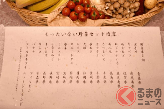 販売されるのは「もったいない野菜セット」と呼ばれる、契約農家や自社農園から届いた野菜やお米がセットになった商品です。