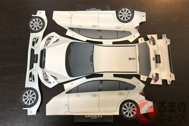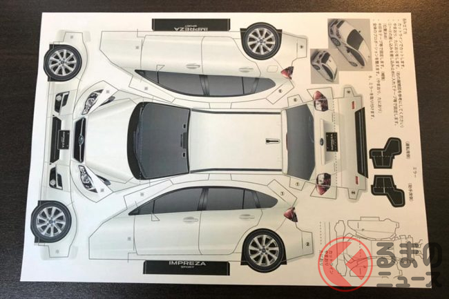 スバルの主力モデルであるインプレッサスポーツのペーパークラフトは、スバル用品株式会社から提供されており、ほかにも「BRZ」があります。