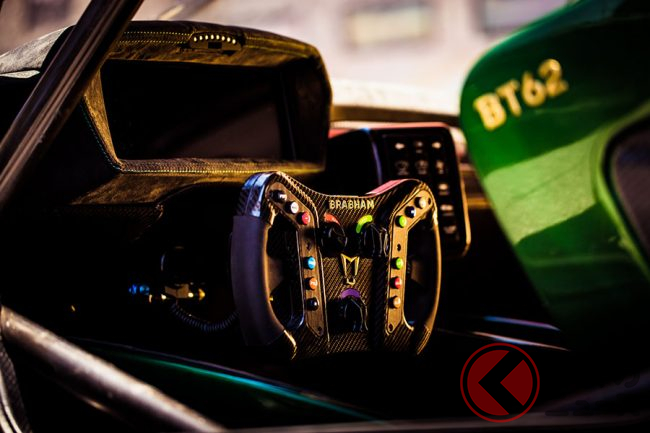 ブラバムBT62は、FIAのGT3基準で開発されたレーシングモデルだ。カーボンを多用した乾燥重量972kgという軽量ボディに、700ps・667Nmを発生するブラバム製4リッターV8自然吸気エンジンをミッドシップに搭載。シングルクラッチの6速セミATに組み合わせる。
