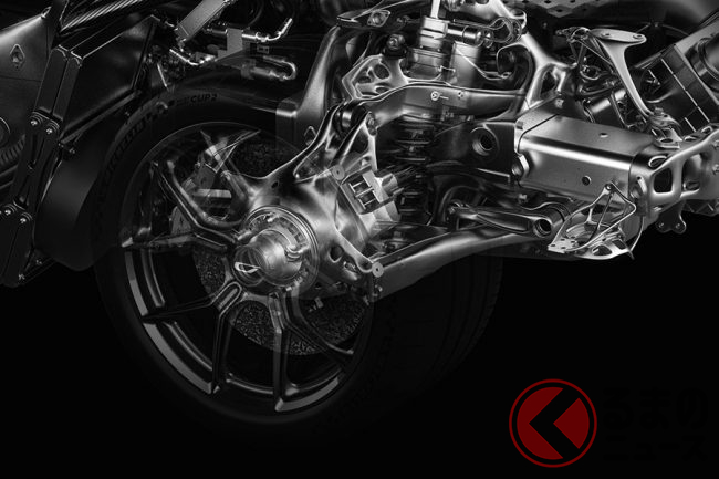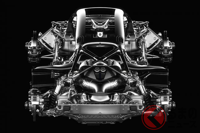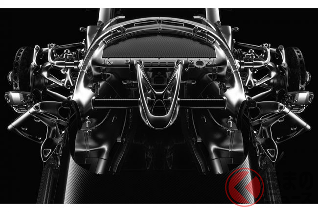 2.88リッターのV型8気筒ツインターボエンジンを搭載するハイブリッドモデルで、システム合計の最高出力は1250psになる。しかもエンジンのレッドゾーンは1万1000rpmと、非常に高回転型のエンジンだ。