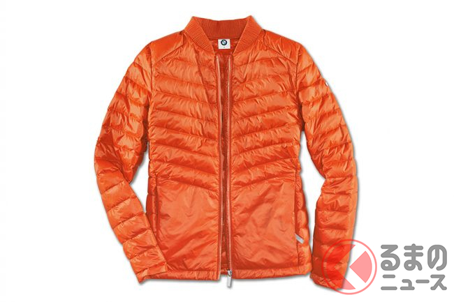 BMWブランドのファンに向け、胸に大きなBMWロゴマークをあしらった女性向けTシャツなど、どうやらテーマカラーは、「コンセプトi4」のボディカラーを意識したフローズン・ライト・コッパーのようだ。とはいえ、ソフトダウンジャケットにはトレンドカラーのオレンジも採用されている。