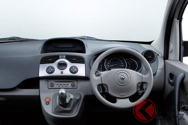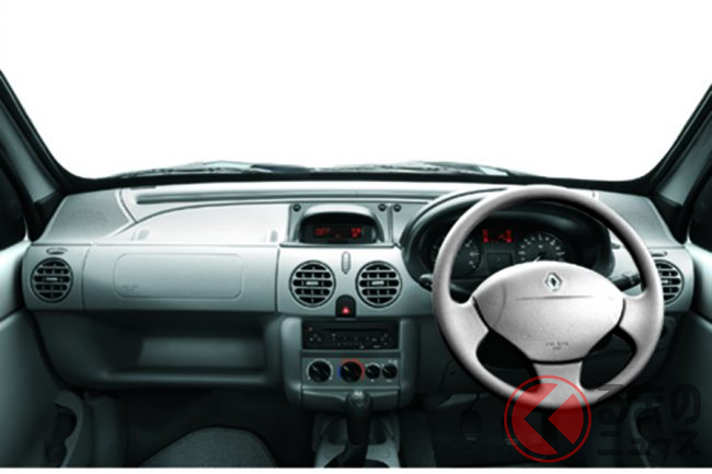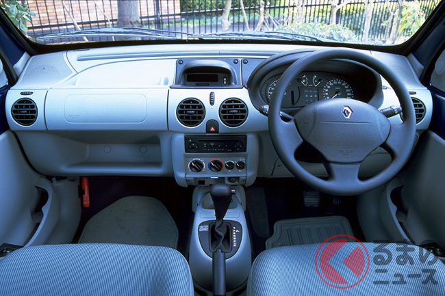 全長3995mm×全幅1675mm×全高1810mm、ホイールベースは2600mmと、圧倒的な車高の高さながら5ナンバーサイズに収まっているのも初代カングーの特徴だ。