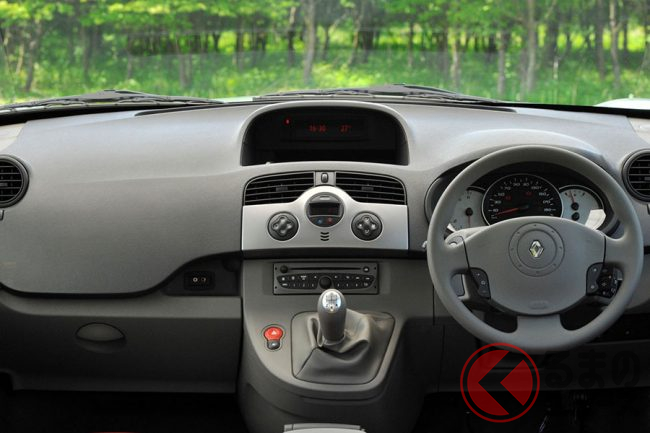 商用車ベースということもあり、インパネなどはプラスチッキーだが、遊び心のあるデザインでカングーの個性に合ったもの。またドアまわりは鉄板むき出しだが、それもまたカングーの味になっている。
