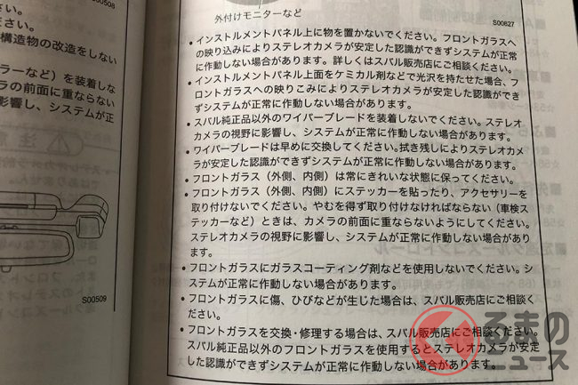 自動ブレーキのカメラはフロントウインドウと一体化されているものも多く、とくに初期の「アイサイト」では、ウインドウへの撥水コーティング剤の使用をNGとしていました。それは一体なぜなのでしょうか。