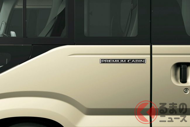 また、外装にはセンタードアの横に、プレミアムキャビンのステッカーを装着し、特別感を演出しています。