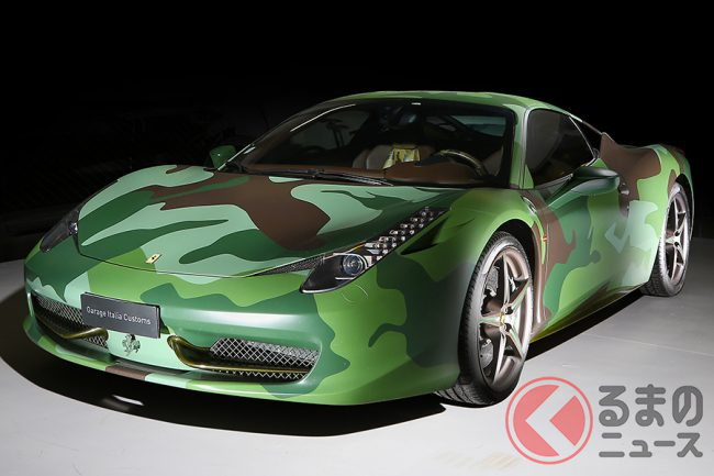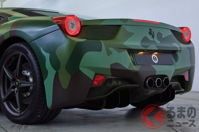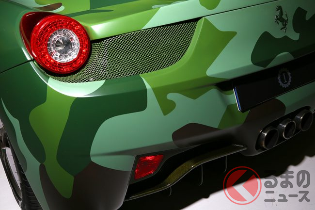 フェラーリには、オーナーが好きなカラーや仕様にカスタムできるテーラーメイドプログラムがあるが、フェラーリのブランドイメージを損なうようなカスタムは受け付けてくれない。では、アーミー仕様の迷彩色はテーラーメイドで受け付けてくれるのだろうか。