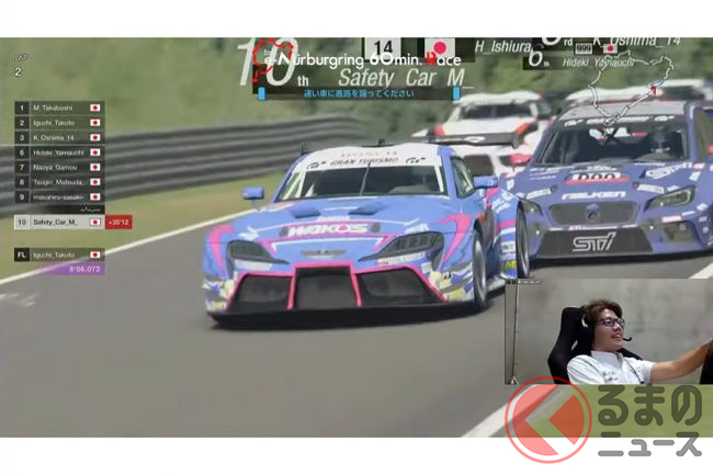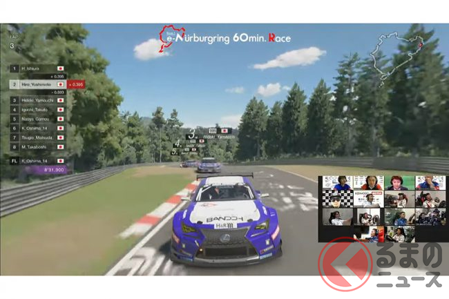 筆者(桃田健史)は、ニュルブルクリンク24時間レースの現地取材、そしてさまざまな量産車でニュルブルクリンク北コースを走行した経験がありますが、今回のオンラインレースに、まるで本物のレースを見ているような雰囲気を感じました。