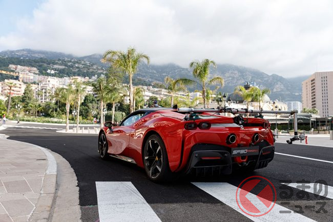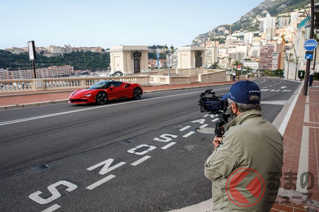 今回の撮影は、新型コロナウイルスの影響でロックダウンしていたモナコの封鎖解除によって実現し、SF90ストラダーレは、F1のサーキットを最高240km/hのスピードで疾走した。