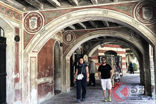 会場のグラッツァーノ ヴィスコンティ村は名前から分かるようにヴィスコンティ家の手によって作られた村で、歩いているといたるところでヴィスコンティ家の紋章「サラセン人を呑み込む大蛇(ビショーネ)」に遭遇する。