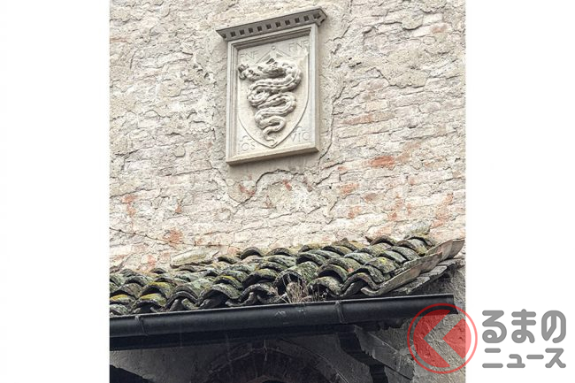 このヴィスコンティ家は13から15世紀、ミラノ公国を統治していた由緒ある家系で、アルファ ロメオのロゴはミラノ市の紋章の赤い十字架とヴィスコンティ家の「サラセン人を呑み込む大蛇」の紋章を組み合わせている。