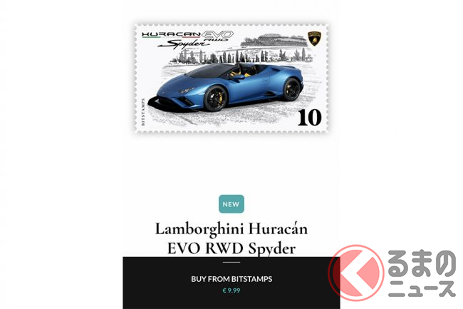 スーパーカー世代の男性ならば、スーパーカーカードを集めた記憶があるだろう。ランボルギーニのデジタル切手は、いうなれば現代版スーパーカードのようなものだ。第1弾の「ウラカンEVO RWD スパイダー」が、現在発売中である。