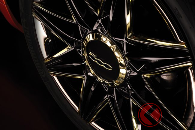 サイドシルとフロントモールディングには、ガラス加工技術が用いられ、ホイールは伝統的にブルガリのシンボルとされてきた星形デザインに、ブラックのラッカーとゴールドのトリムの組み合わせとなる。