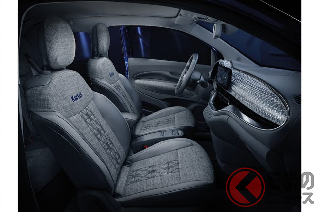 インテリアに採用される手触りのよいテキスタイルのプラスチック素材は、最新のカルテル製のチェアと同様に100%リサイクルのポリプロピレンだ。ファブリックはナチュラルで暖かい雰囲気を醸し出しているが、これもリサイクル・ポリエステル100%の素材となっている。