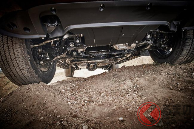 ボディサイズは、全長4885mm×全幅1865mm×全高1835mmと、トヨタ「ランドクルーザープラド」と同等の大きさです。また、最低地上高は225mmと余裕があり、悪路走行も難なくこなします。