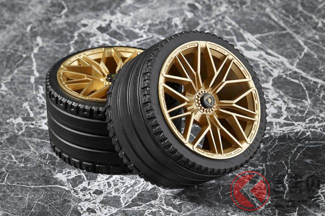 可動式リアスポイラーやフロントとリアのサスペンションはもちろんのこと、ステアリングにはオートモビリランボルギーニバッジが付いたホイールが装着されている。