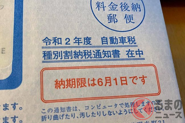 クルマを保有しているドライバーが5月末(2020年は6月1日)に納付義務があるのが、自動車税と軽自動車税です(ともに2019年10月より各税の「種別割」に名称変更)。