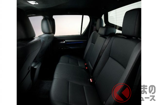 面白いのは、最大積載量と牽引能力の向上です。新型ハイラックスはすべてのボディタイプにおいて、最大積載量1t、牽引能力が3.5tになったということです。