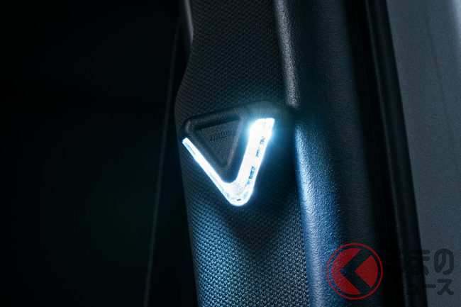 さらに、センターピラーの前方に取り付ける小型LEDライトとして、スマートフィットライトを設定し、運転席と助手席それぞれのドア開閉に連動して点灯することでおもてなし感を演出。ラゲージ用としては、スマートなデザインのなかにバックドアの開閉と連動して光るLEDを搭載し、夜間の使い勝手を向上させました。
