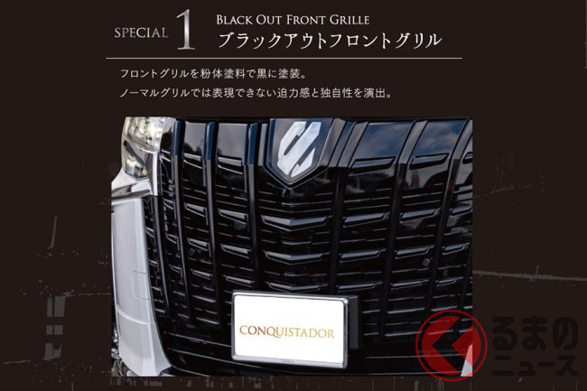 大阪トヨペットでは、「大阪トヨペットアルファード特別仕様車 CONQUISTADOR コンキスタドール」を展開し、レクサスに採用されている漆黒メッキを採用したオリジナルカラーのモデリスタエアロキットや、グラスコーティングガードコスメを施工した仕様です。