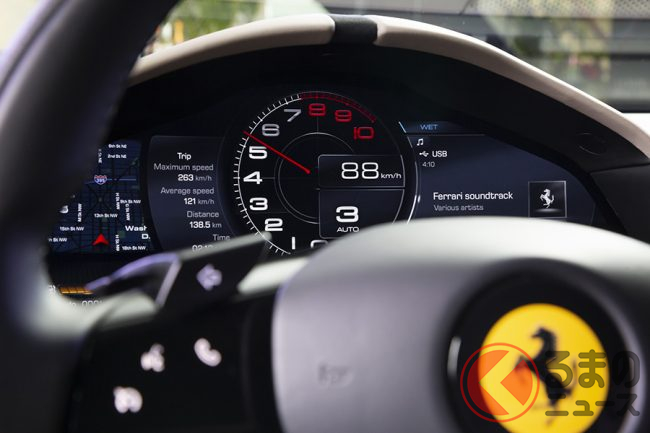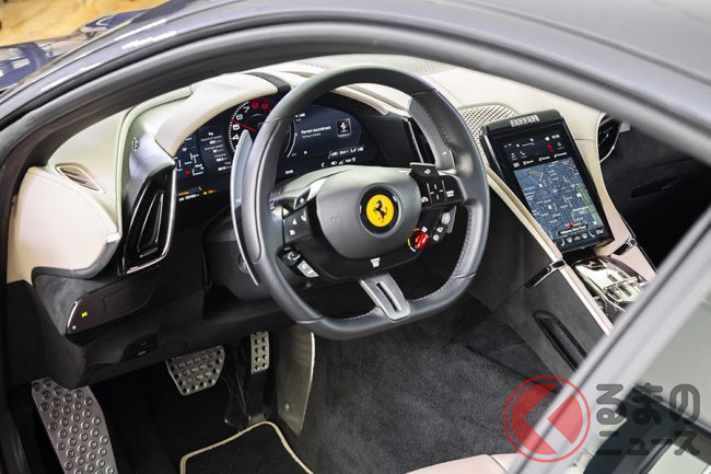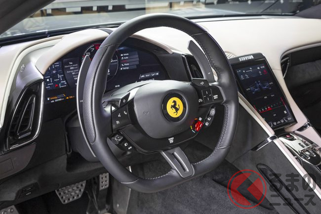ローマはフロントにV8エンジンを搭載した、新時代のフェラーリといって差し支えないだろう。エクステリアのデザインは言うに及ばず、インフォテイメントやインテリアのデザインなど、ライバルを一気に突き放した感がある。