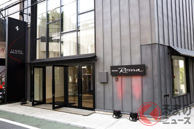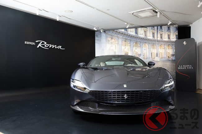 「新・甘い生活」がコンセプトのフェラーリ・ローマ。その元ネタはもちろん映画『甘い生活』だが、1950-1960年代における、ローマの自由なライフスタイルを現代的に再解釈したという。そのフェラーリ・ローマが、表参道でお披露目された。