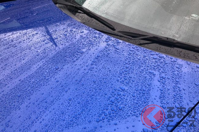 「雨ジミや水アカ対策として、洗車をしてコーティングで保護するのがよいでしょう。その場合、通常のワックス(油性)を使用すると雨に濡れて流れ出し、油膜を形成する原因にもなります。