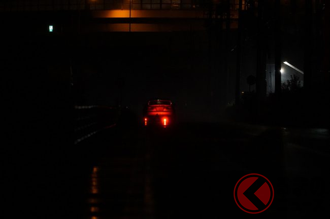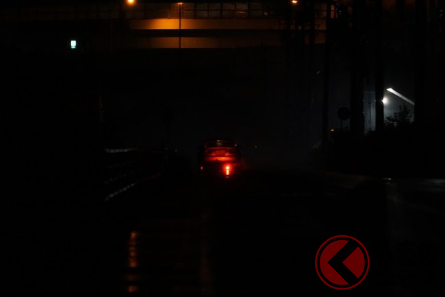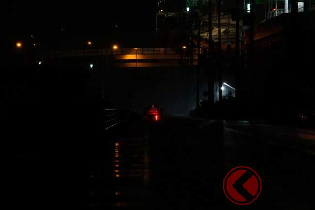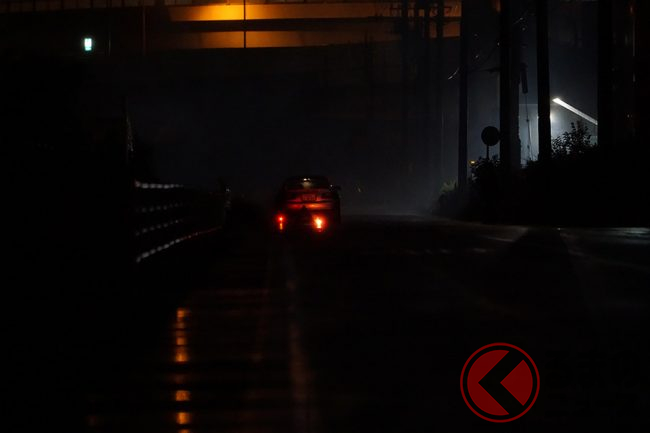 保安基準では「夜間200メートル」先から見えることが条件に上がっているので、夜間に暗い場所で光り方をチェックしてみました(消防署へ火炎発生届け出を出して検証しています)。