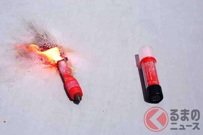 非常時知らせる「発炎筒」燃焼時間なぜ5分? 近年は炎も出ないLEDタイプも 視認性に違いある?