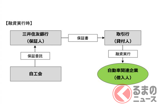 同プログラムは、自工会より金融機関(三井住友銀行)に預け入れる預金を担保として信用保証をおこなうことで、資金調達を早期に必要とする自動車関連企業が、取引銀行から迅速に融資を受けることを可能にする仕組みです。