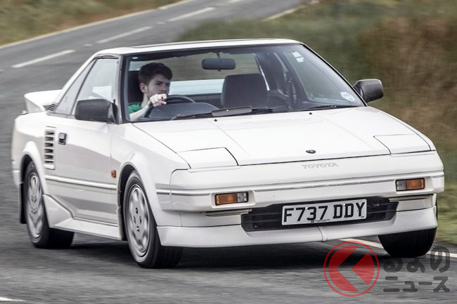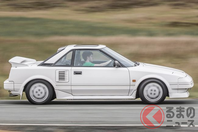 トヨタ初代「MR2」は、1984年に国産量産乗用車初のミッドシップ車として誕生。上位グレードは高回転型の1.6リッター直列4気筒DOHCエンジン「4A-G型」を横置きに搭載し、軽量な車体と相まって軽快なコーナーリングを楽しむことができました。